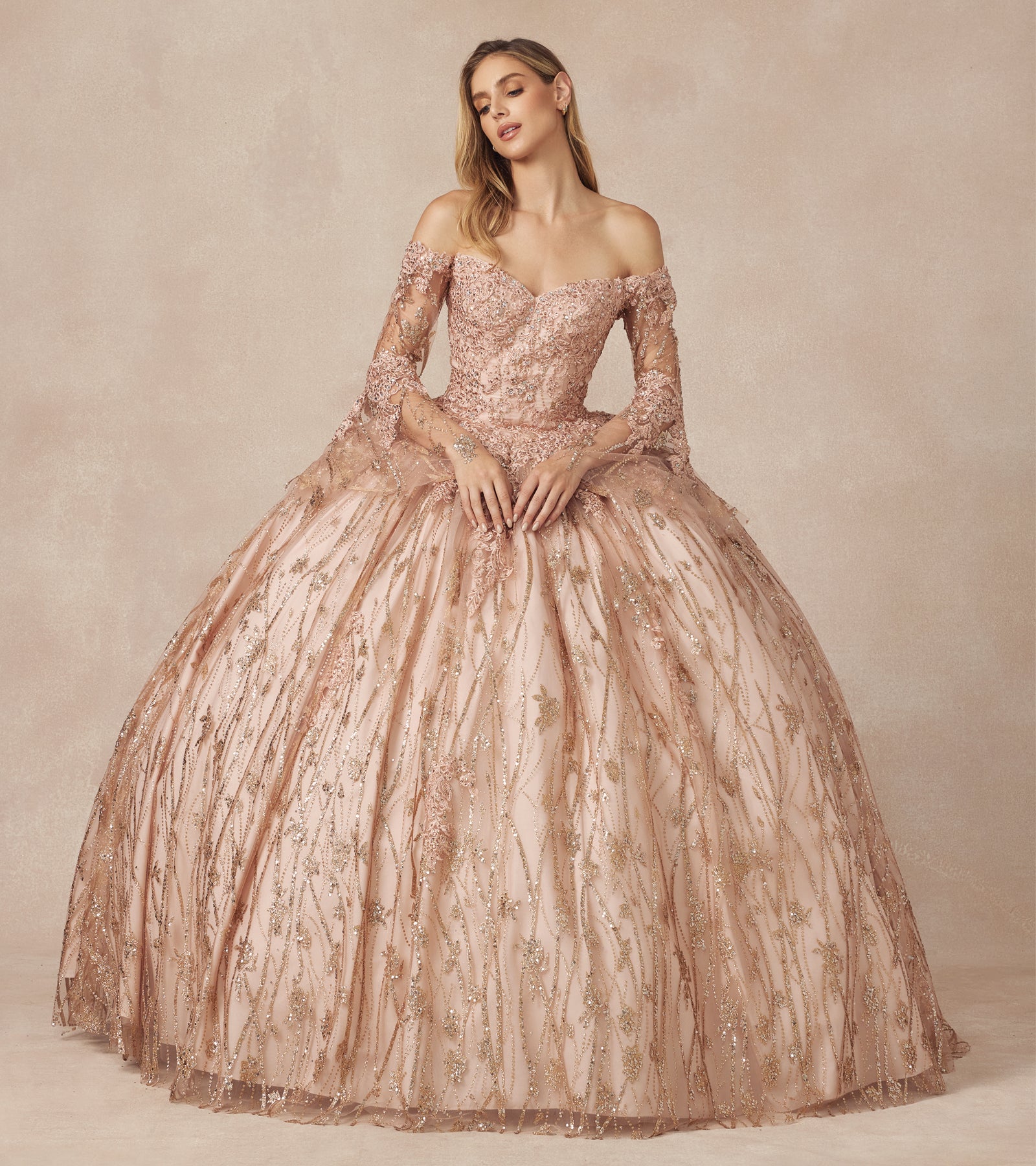 Fairytale Metallic Quince Dress with Bell Sleeves